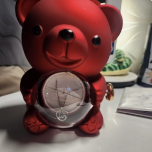 Дівчина спочатку думала просто ведмедик, а коли відкрила і побачила кулон — реально розчулилась. Сказала, що тепер це її улюблена прикраса.