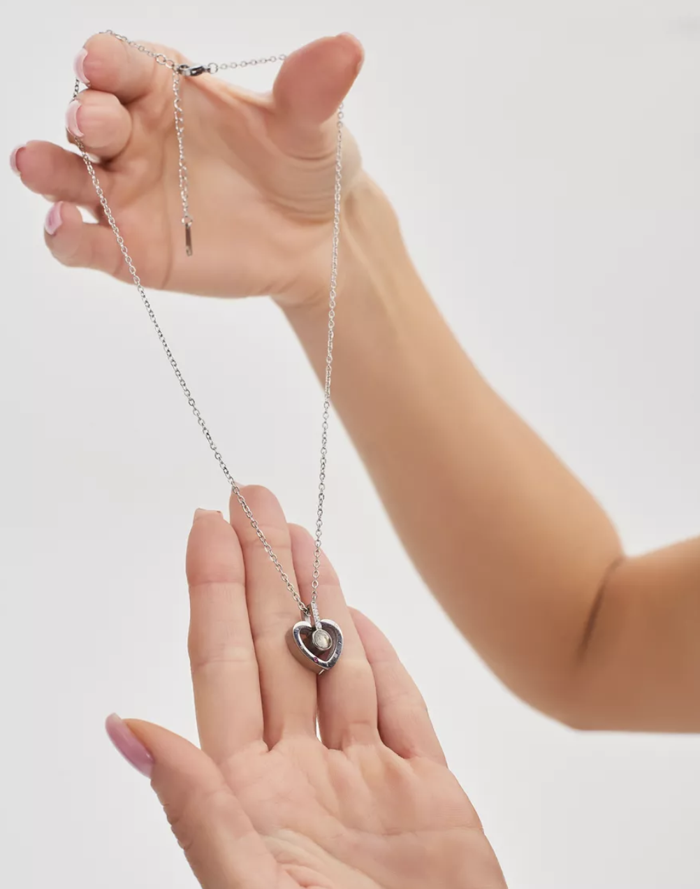 Витончений розмір кулона 1,8 × 1,3 см. Ланцюжок універсальної довжини ≈ 45–50 см - робить прикрасу ніжною та підходить під всі розміри шиї — її можна носити не лише на шиї, а й як стильний аксесуар на зап'ясті чи кісточці.