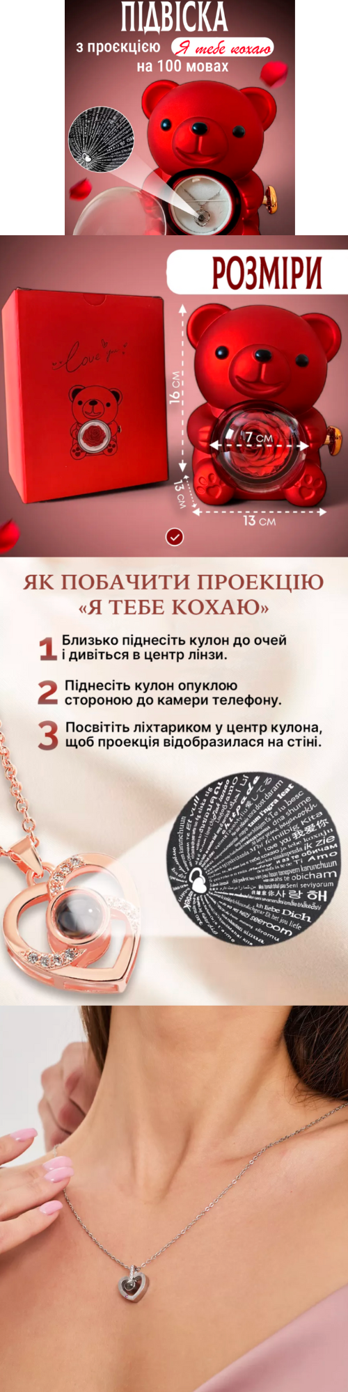 💝 Подарунковий набір до Дня закоханих — ведмедик зі скринькою та кулон “I love you”