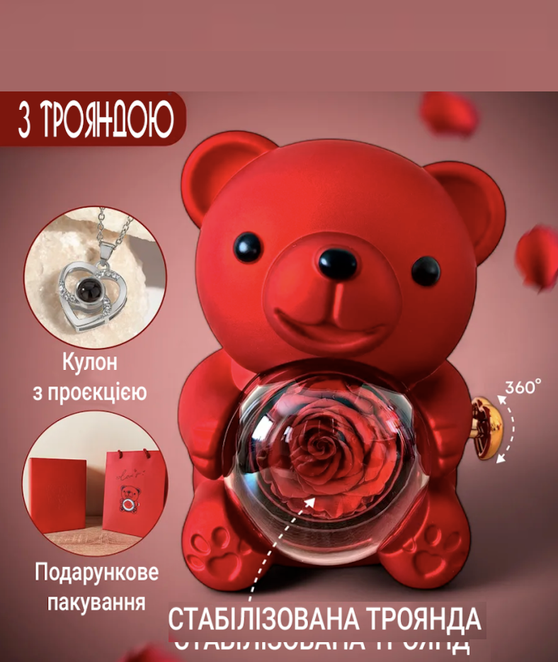 - ✔️ Обертова скринька-ведмедик з трояндою
